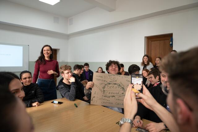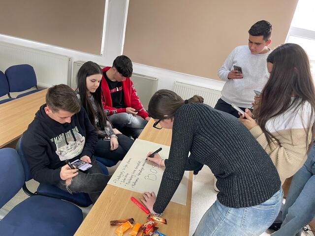 Unsere Aktivitäten wurden mit viel Freude und Engagement aufgenommen. Wir haben über das Studentenleben in Cluj-Napoca, über deutsche Unternehmen und Profile in der Region und über die Bedeutung von Hard- und Softskills gesprochen. Außerdem haben wir gemeinsam ihre Traumkarrieren erkundet und sie bei der Suche nach Informationen über Unternehmen und deren Werte angeleitet, damit sie einen passenden Arbeitsplatz wählen können.
