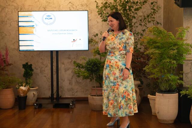 Ein besonderes Highlight des Abends war die Versteigerung der Gemälde der talentierten 11-jährigen Künstlerin Antonia Ema Preja. Der Erlös dieser Auktion kommt der Deutschen Schule in Lancram zugute. Die Frau Direktorin Verona Onofrei hat die Schule vorgestellt und betont, wie wichtig diese Unterstützung für die Anschaffung dringend benötigter Unterrichtsmaterialien ist.