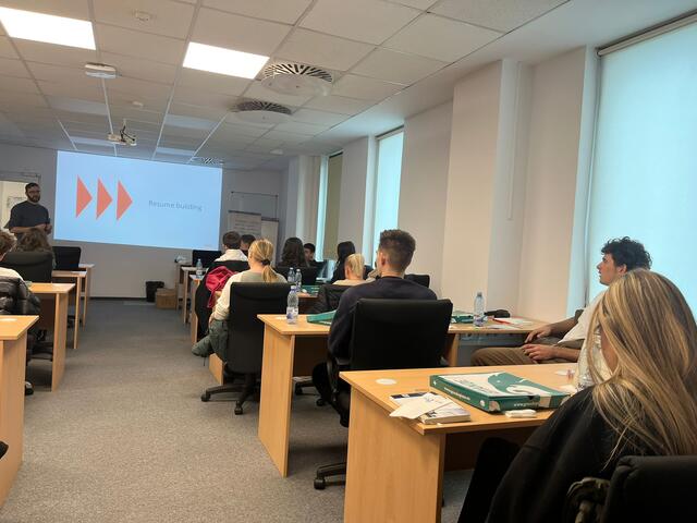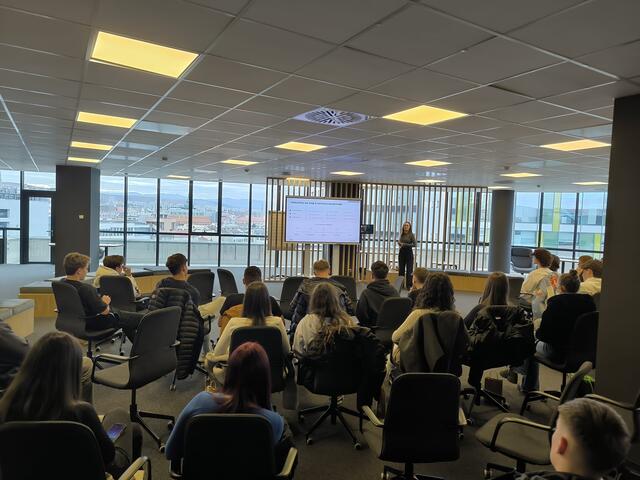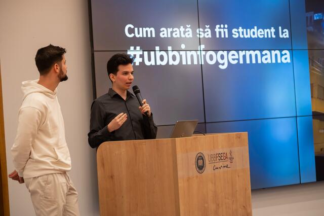 Am Vormittag wurden die Schüler von den Vertretern der deutschsprachigen Abteilungen der Fakultät für Wirtschaftswissenschaften und Unternehmensführung (FSEGA) der Babeș-Bolyai-Universität empfangen. Dort erhielten sie einen umfassenden Einblick in das Studentenleben und die Karrieremöglichkeiten durch ein Studium in deutscher Sprache.